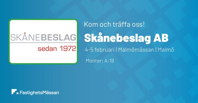 Träffa Skånebeslag AB och Skånebeslag Snickeri AB på Fastighetsmässan i Malmö 4-5 februari. Vi visar Skåform badrumsinredning, beslag och inredning för smart renovering och så pratar vi självklart om hur vi med vårt snickeri kan hjälpa fastighetsbranschen att renovera och livstidsförlänga både interiört och exteriört.