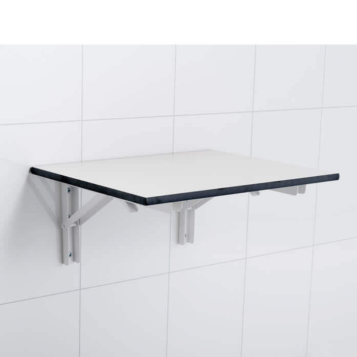 Hylla fällbar i kompaktlaminat 400x320x12 mm komplett med fällbara konsoler, svart kant.