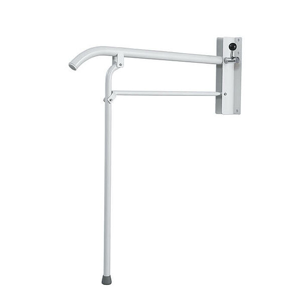 Toalettarmstöd 21033 vit med stödben uppfällbart med låsmekanism.