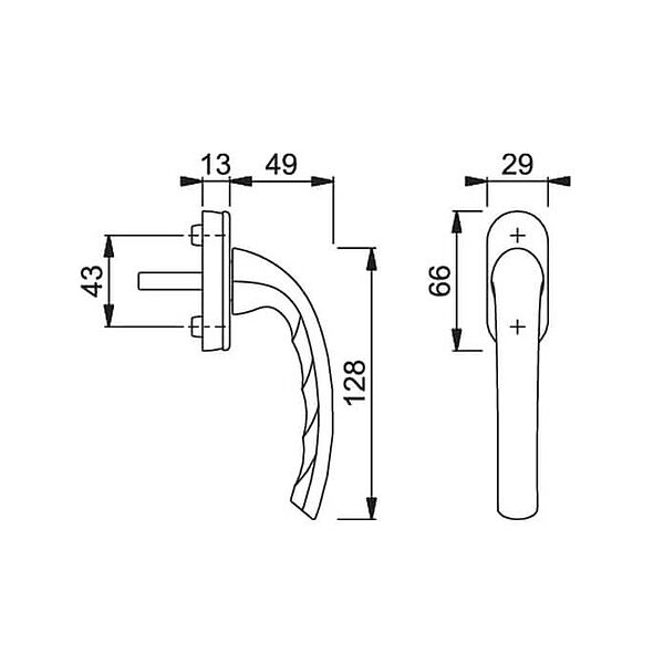 Spanjoletthandtag rak oval Aluminium Silvereloxerad /b=29 Sprint 8/43mm.