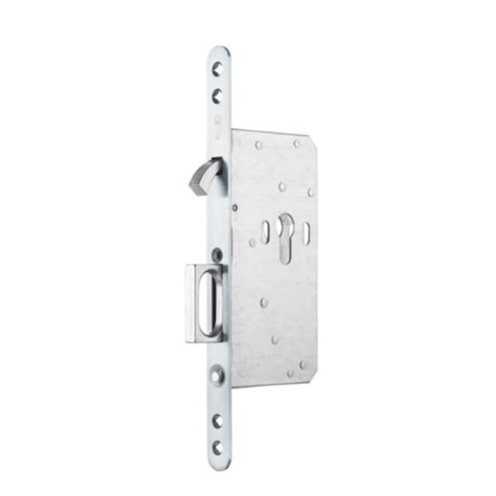 Skjutdörrlås serie 72/Eurocyl/ nyckel/vred. Dorn 55 Rostfri.