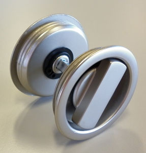 Skjutdörrvred kpl Zink mattförnicklad ø46 mm passar i std ø 40 mm dörrhål.