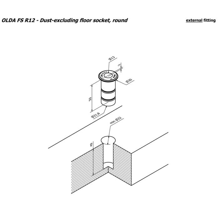 Golvbleck Olda FS R12 (ø13) runt skyddat golvbleck.