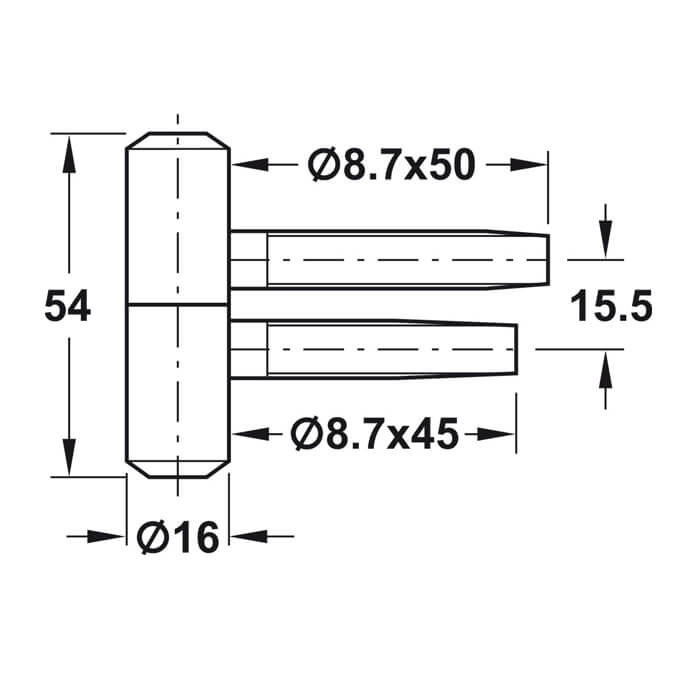 Bultgångjärn för falsade innerdörrar upp till 100 kg