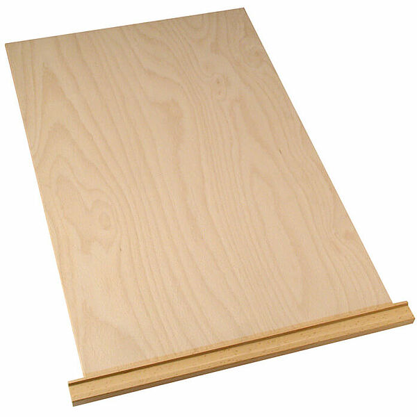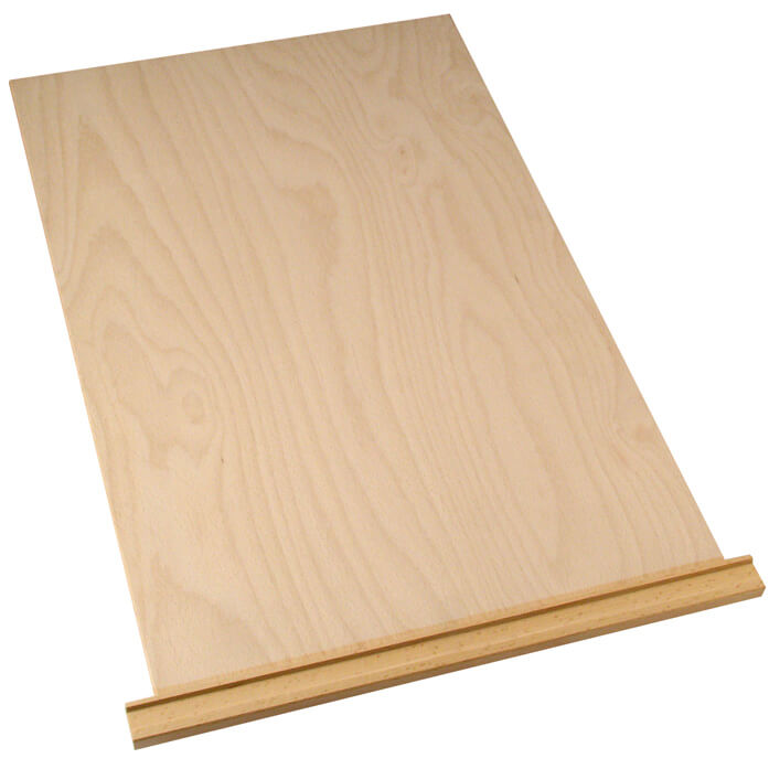 Draglisten i massiv bok är förlängd med 17 mm på varje sida så att skärbrädan förhindars att försvinna in i skåpet.